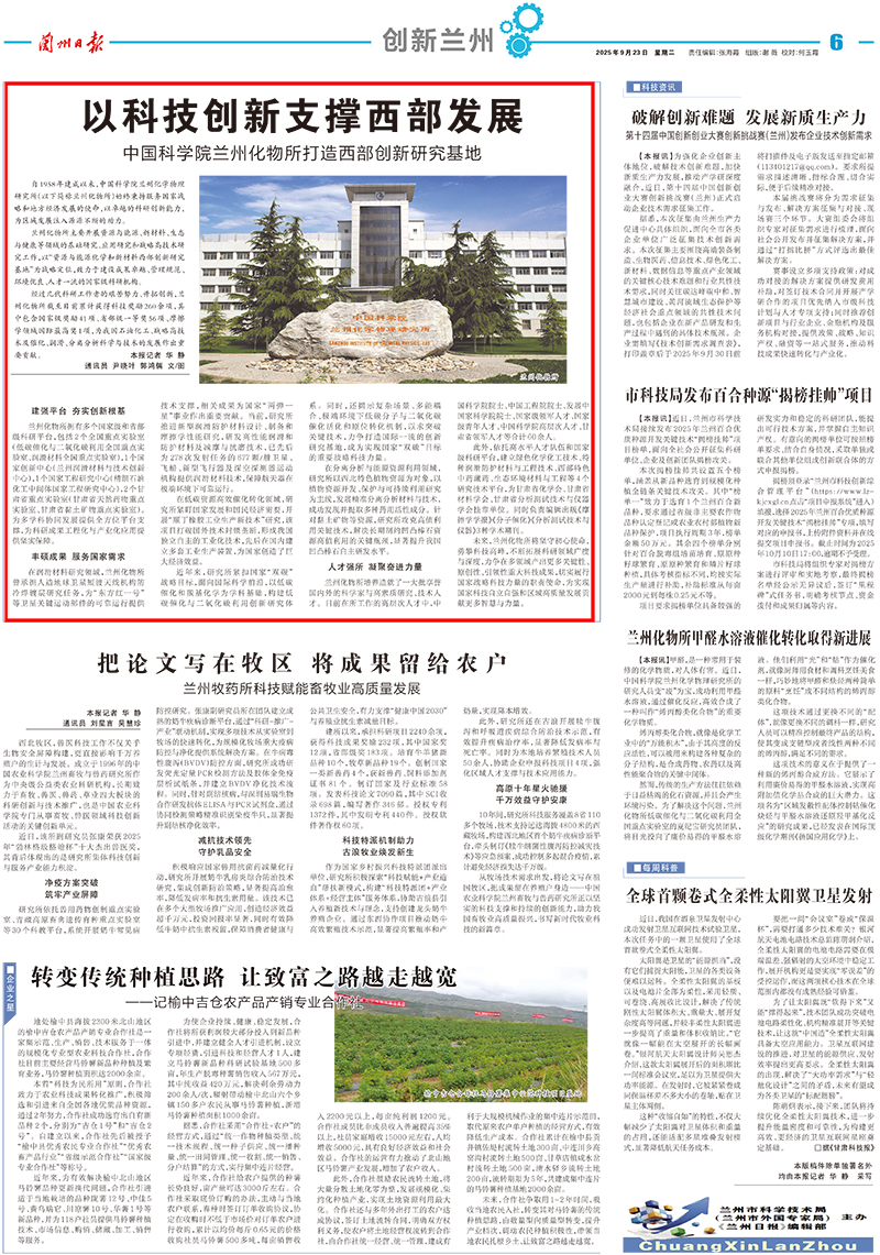 【蘭州日?qǐng)?bào)】以科技創(chuàng)新支撐西部發(fā)展?中國(guó)科學(xué)院蘭州化物所打造西部創(chuàng)新研究基地