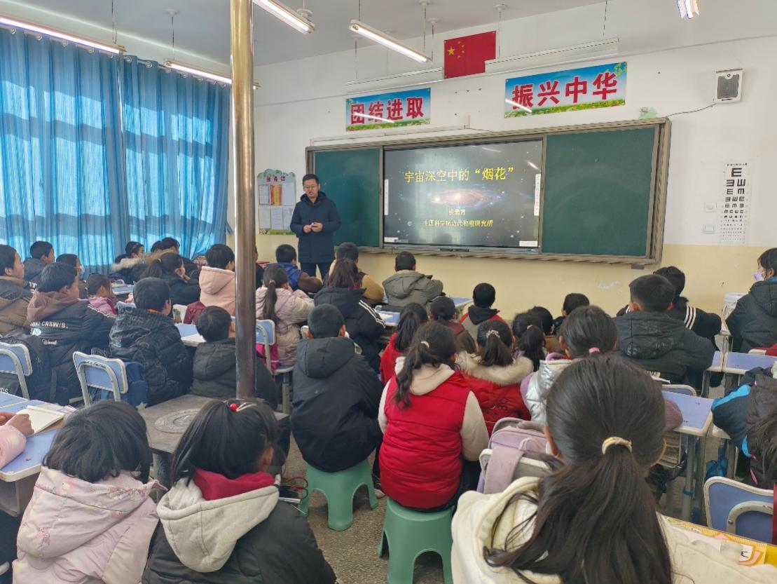 為建立健全結(jié)對開展教育幫扶工作機(jī)制,近代物理所研究員、首屆中國科技青年論壇一等獎(jiǎng)獲得者侯素青老師受聘王泉小學(xué)擔(dān)任“科技教師”,并作了題為《宇宙深空中的“煙花”》的科普報(bào)告。