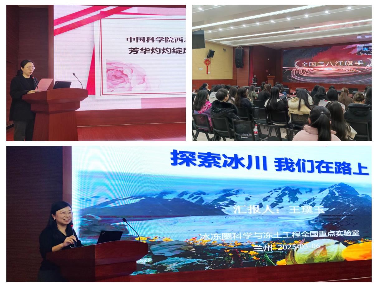 3月6日,婦委會(huì)組織女職工、女研究生集中觀看了中國(guó)科學(xué)院“搶占科技制高點(diǎn) 巾幗建功助攻堅(jiān)”先進(jìn)事跡報(bào)告會(huì),聆聽(tīng)了2024年度全國(guó)三八紅旗手、全國(guó)巾幗文明崗、中央和國(guó)家機(jī)關(guān)三八紅旗手等獲獎(jiǎng)代表的感人事跡,感悟新時(shí)代女性科技工作者勇攀高峰的拼搏精神。隨后,婦委會(huì)主任孟憲紅研究員主持召開(kāi)了西北研究院專(zhuān)題報(bào)告會(huì),紀(jì)委書(shū)記袁小華代表領(lǐng)導(dǎo)班子向全體女職工致以節(jié)日問(wèn)候和美好祝愿,感謝大家為西北研究院科技創(chuàng)新事業(yè)作出的重要貢獻(xiàn),并鼓勵(lì)全體女職工以更加昂揚(yáng)的精神面貌,在各自崗位上繼續(xù)拼搏奮斗。青年女科學(xué)家王璞玉研究員以《探索冰川 我們?cè)诼飞稀窞轭},分享了自己和團(tuán)隊(duì)扎根冰川的科研往事,為大家?guī)?lái)了一場(chǎng)科學(xué)與情懷交織的精神盛宴。