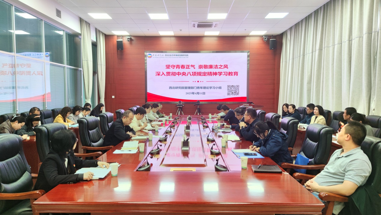 4月11日,中國科學(xué)院西北生態(tài)環(huán)境資源研究院青年理論學(xué)習(xí)小組(管理片)召開“堅守青春正氣 崇敬廉潔之風(fēng),深入貫徹中央八項規(guī)定精神學(xué)習(xí)教育”學(xué)習(xí)交流會。西北研究院黨委書記、小組指導(dǎo)老師張長春應(yīng)邀參加會議。會議由小組組長瞿海燕主持。