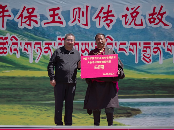 活動首日,幫扶團(tuán)隊(duì)與白玉鄉(xiāng)政府舉行科技幫扶啟動儀式。海北站站長張振華研究員代表團(tuán)隊(duì)向白玉鄉(xiāng)人民政府交接“高原生態(tài)和資源產(chǎn)業(yè)技術(shù)服務(wù)站”牌匾。該服務(wù)站的建立,標(biāo)志著白玉鄉(xiāng)擁有了集技術(shù)咨詢、成果轉(zhuǎn)化和人才培養(yǎng)于一體的常態(tài)化科技支撐平臺,為當(dāng)?shù)厣鷳B(tài)保護(hù)與產(chǎn)業(yè)發(fā)展提供長效智力支持。民盟青海省委副主委、西北高原所李玉林研究員向?qū)趲头龅哪裂虼寰栀?噸優(yōu)質(zhì)顆粒飼料,為緩解當(dāng)?shù)啬撩裨陉P(guān)鍵生產(chǎn)時節(jié)面臨的飼料短缺困難提供幫助。