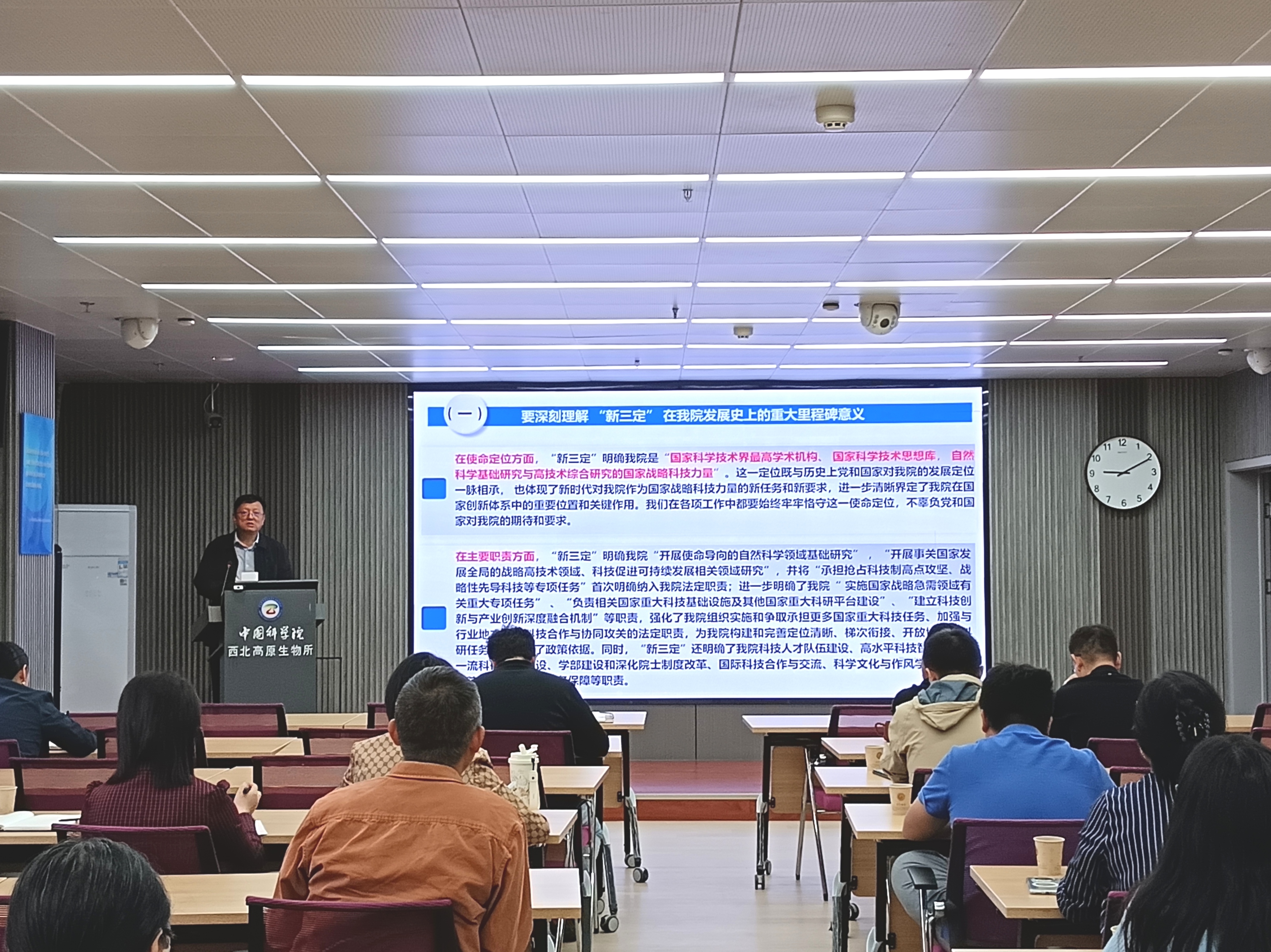 陳世龍傳達了院黨組夏季擴大會議精神,重點圍繞貫徹落實黨中央賦予中國科學院的新使命新要求、組織實施國家重大科技任務、高質(zhì)量做好“十五五”規(guī)劃編制工作、進一步深化科研院所改革以及鞏固深化深入貫徹中央八項規(guī)定精神學習教育成果等方面進行了深入講解。結合西北高原所科研工作實際,將講話精神與研究所重點工作相結合,引導參會人員將思想和行動統(tǒng)一到院黨組決策部署上來。