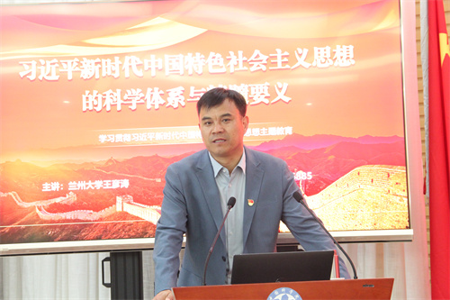 根據(jù)蘭州分院分黨組關(guān)于開展好學(xué)習(xí)貫徹習(xí)近平新時代中國特色社會主義思想主題教育的系列工作要求,會議第二階段進行了主題教育專題團課報告會,邀請?zhí)m州大學(xué)馬克思主義學(xué)院王彥濤副教授作《習(xí)近平新時代中國特色社會主義思想的科學(xué)體系與精髓要義》專題報告。報告從“習(xí)近平新時代中國特色社會主義思想是如何創(chuàng)立的”“習(xí)近平新時代中國特色社會主義思想回答了什么重大時代課題”“習(xí)近平新時代中國特色社會主義思想主要包含哪些內(nèi)容”“如何理解習(xí)近平新時代中國特色社會主義思想的歷史地位”“如何學(xué)好用好習(xí)近平新時代中國特色社會主義思想”5個方面系統(tǒng)講解了習(xí)近平新時代中國特色社會主義思想的思想內(nèi)涵與重大意義,報告內(nèi)容詳實、生動全面,為與會團員青年進一步接受主題教育起到了良好的指導(dǎo)作用。
