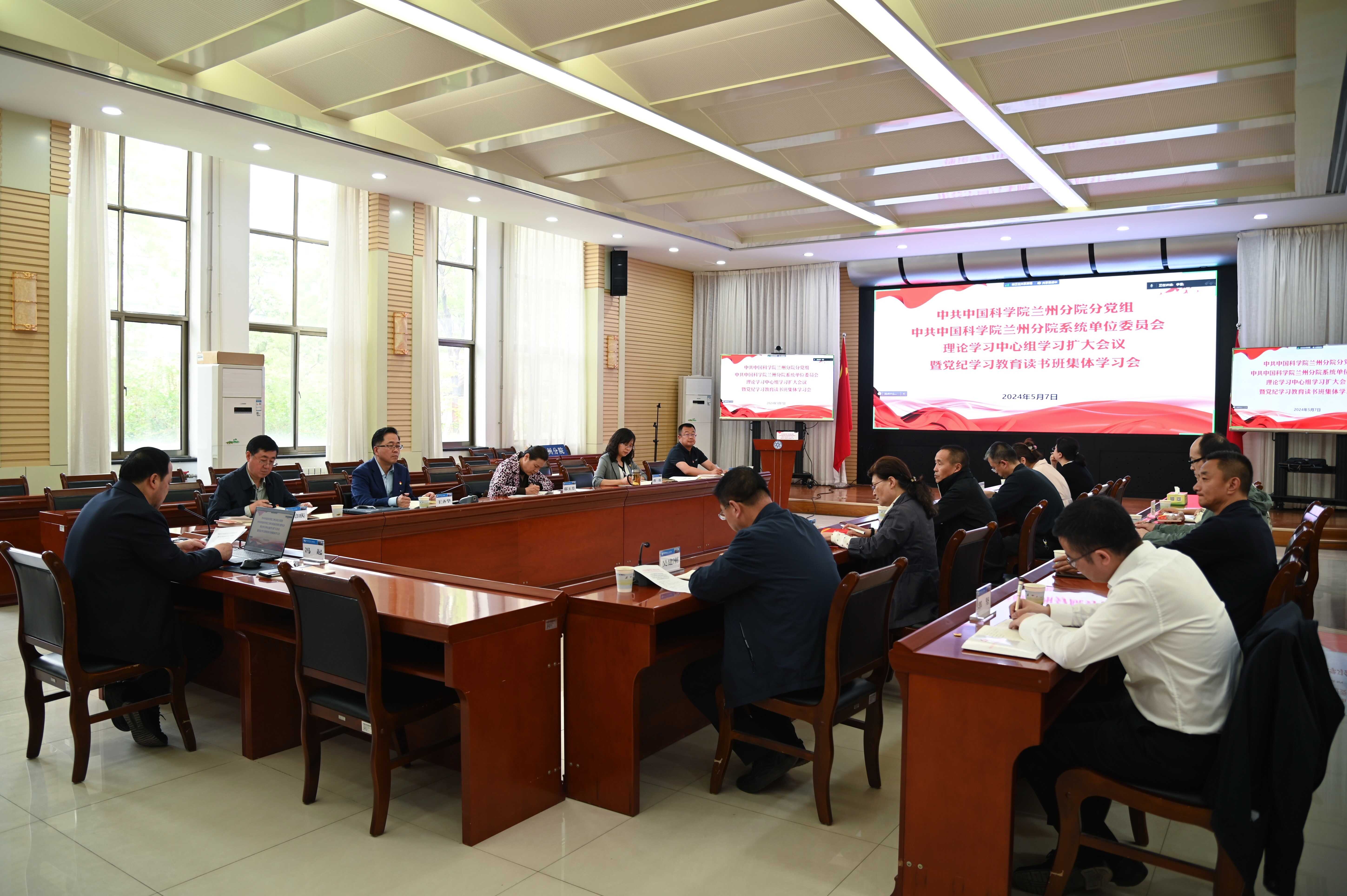 5月7日下午,中共中國科學(xué)院蘭州分院分黨組召開2024年第5次理論學(xué)習(xí)中心組學(xué)習(xí)擴大會議暨黨紀(jì)學(xué)習(xí)教育讀書班集體學(xué)習(xí)會議。會議由蘭州分院分黨組書記、院長馮起主持。分黨組領(lǐng)導(dǎo)班子成員,系統(tǒng)單位黨委委員,機關(guān)黨委委員、高級業(yè)務(wù)主管四級職員、各部門負(fù)責(zé)人參加會議。