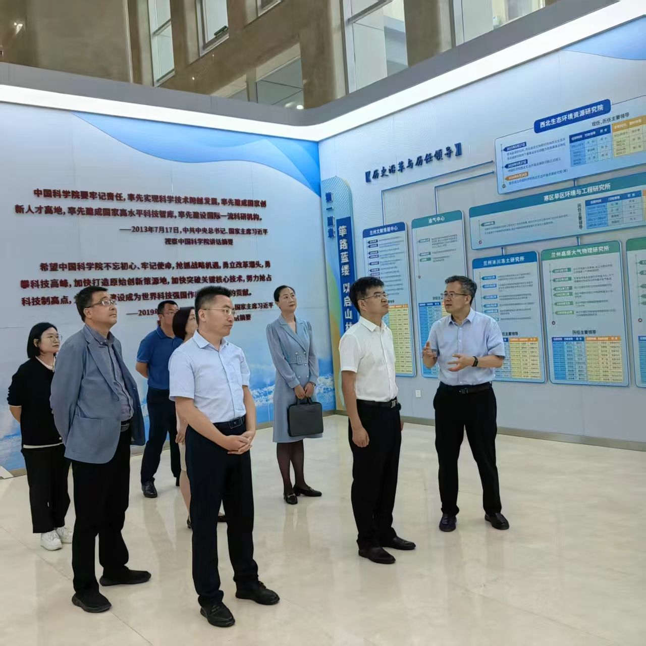 9月4日,寧夏回族自治區(qū)科技廳黨組書(shū)記、廳長(zhǎng)王偉一行來(lái)訪蘭州分院,先后考察調(diào)研了蘭州化學(xué)物理研究所和西北生態(tài)環(huán)境資源研究院。蘭州化物所副所長(zhǎng)石峰,西北研究院黨委書(shū)記、副院長(zhǎng)張長(zhǎng)春分段陪同調(diào)研。