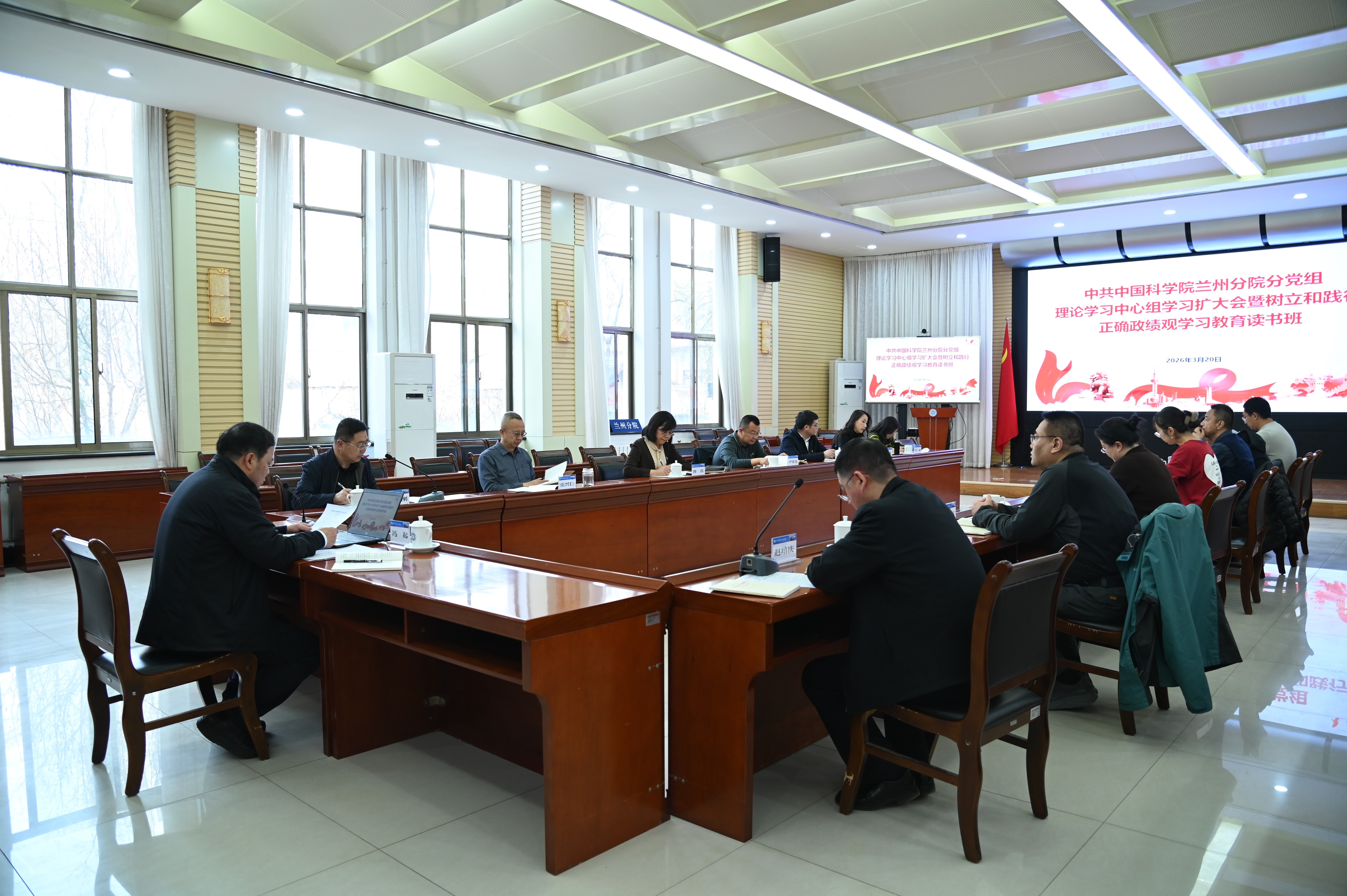 3月20日,中共中國科學院蘭州分院分黨組舉辦理論學習中心組擴大會暨樹立和踐行正確政績觀學習教育讀書班。分黨組領(lǐng)導(dǎo)班子成員、系統(tǒng)單位黨委委員,機關(guān)黨委委員、紀委委員、高級業(yè)務(wù)主管四級職員、各部門負責人、各黨支部書記參加會議。會議由分黨組書記、院長馮起主持。