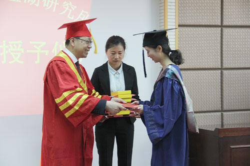 畢業(yè)典禮在與會(huì)人員集體奏唱國(guó)歌聲中拉開(kāi)序幕。主持工作的副所長(zhǎng)吳志堅(jiān)代表所領(lǐng)導(dǎo)發(fā)表講話,對(duì)2017屆畢業(yè)生表示衷心地祝賀,對(duì)今后的發(fā)展提出了四個(gè):思想好、身體好、學(xué)習(xí)好、工作好。殷切期望畢業(yè)生能有一個(gè)積極、樂(lè)觀、不斷進(jìn)取的健康思想,能夠積極進(jìn)行體育鍛煉,保持健康身體,能夠在今后的道路上不斷學(xué)習(xí),成為今后工作崗位上的棟梁之才,能夠積極應(yīng)對(duì)工作中遇到的各種情況,對(duì)工作富有熱情。吳志堅(jiān)還宣讀了中國(guó)科學(xué)院大學(xué)丁仲禮校長(zhǎng)給2017屆畢業(yè)生的一封信,希望畢業(yè)生擔(dān)負(fù)起丁仲禮校長(zhǎng)所給予的厚望。