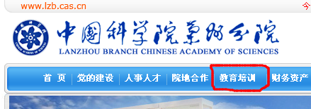 登陸中國科學(xué)院蘭州分院網(wǎng)站(http://www.alu-kal.com/),點擊頁面上方的“教育培訓(xùn)”欄目,如圖