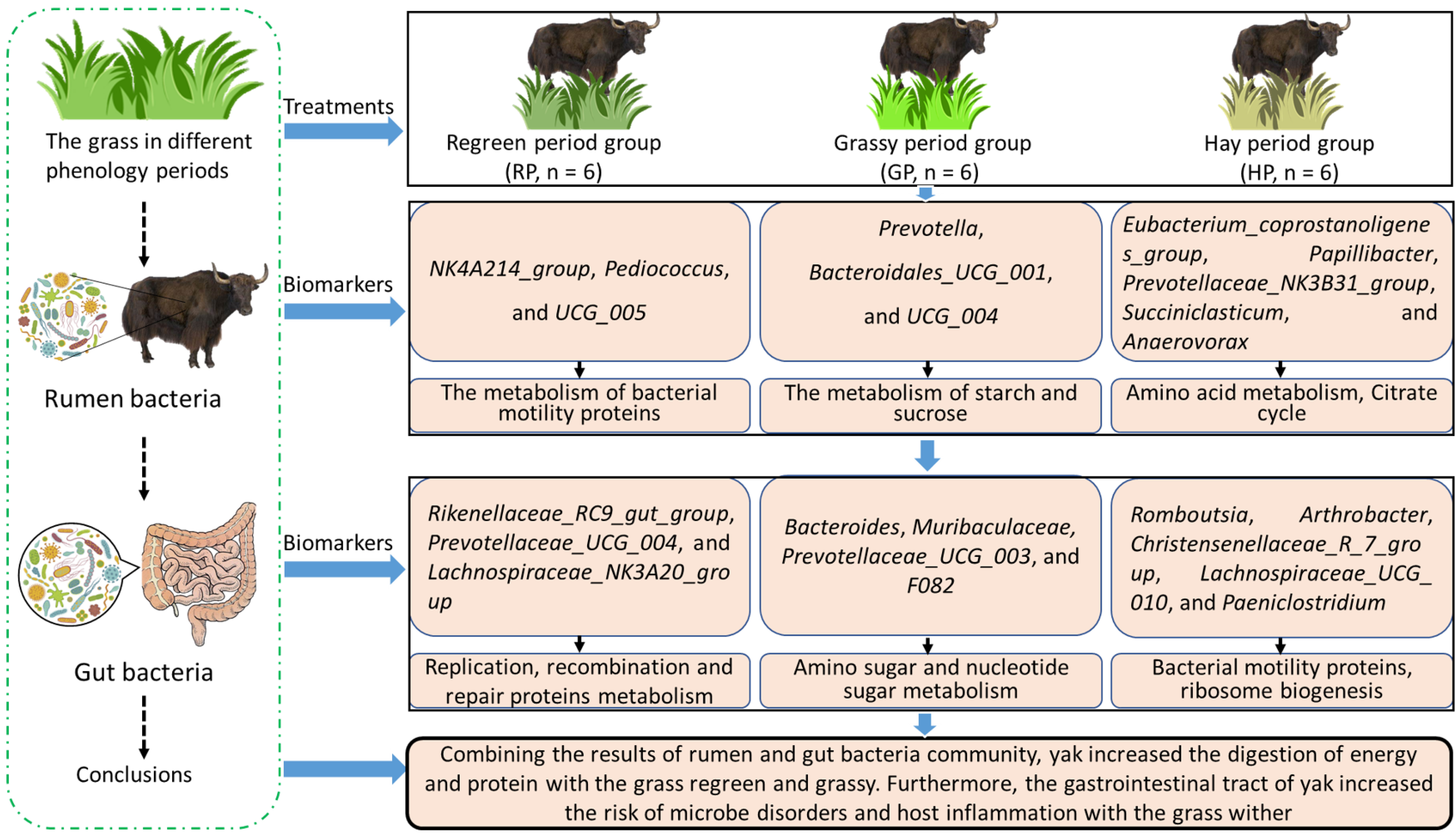 相關(guān)研究成果以Targeted and untargeted metabolomics reveals meat quality in grazing yak during different phenology periods on the Qinghai-Tibetan PlateauEffects of the alpine meadow in different phenological periods on rumen fermentation and gastrointestinal tract bacteria community in grazing yak on the Qinghai-Tibetan Plateau為題,分別發(fā)表在Food Chemistry(中國(guó)科學(xué)院1區(qū)TOP期刊)和BMC Microbiology (中國(guó)科學(xué)院2區(qū))。西北高原所博士研究生郭同慶為第一作者,徐世曉研究員為通訊作者。該工作得到了國(guó)家重點(diǎn)研發(fā)計(jì)劃(2021YFD1600205) ,國(guó)家自然科學(xué)基金區(qū)域創(chuàng)新發(fā)展聯(lián)合基金(U21A20250),中國(guó)科學(xué)院戰(zhàn)略性先導(dǎo)科技專(zhuān)項(xiàng)(XDA23060603),青藏高原第二次科學(xué)考察(2019QZKK040104)和中國(guó)科學(xué)院“西部之光”跨學(xué)科創(chuàng)新團(tuán)隊(duì)(CASLWC-2021)等項(xiàng)目資助和支持。