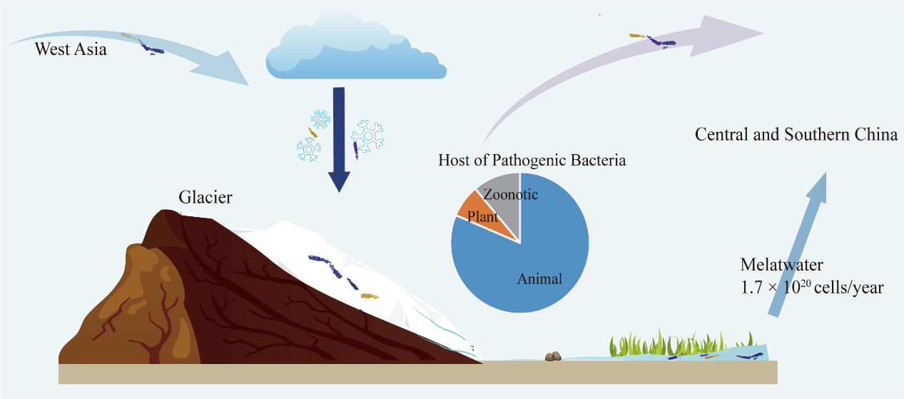冰川是全球最大的淡水儲備庫,同時也是天然的微生物保存庫。隨著全球氣候變暖、冰川加速消融,封存在冰川中的致病菌被釋放出來,會對人類帶來潛在的生物安全風(fēng)險。近幾十年來,環(huán)境中的病原體突破了原有的生態(tài)屏障,而快速變化的冰川生態(tài)系統(tǒng)中致病微生物的特征及傳播方式尚不清楚。