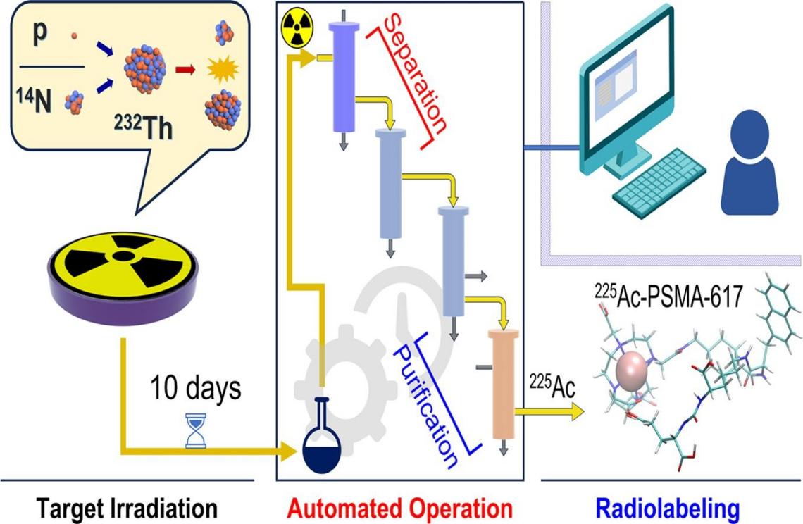 -223(半衰期為11.4天)和錒-225(半衰期為10天)作為兩種極具潛力的阿爾法發(fā)射同位素,由于其獨特的物理化學(xué)性質(zhì),在小體積腫瘤和多位點轉(zhuǎn)移性癌癥的治療中展現(xiàn)出廣泛的應(yīng)用前景。然而,傳統(tǒng)的鐳-223和錒-225生產(chǎn)方法復(fù)雜且效率不高,難以滿足日益增長的需求,迫切需要開發(fā)出一種高效且自動化的制備系統(tǒng)。