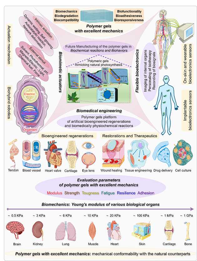聚合物凝膠作為一類典型的類組織工程軟材料,在裝備動力傳動系統(tǒng)、致動器和機器人、能源裝備、生物醫(yī)療工程、柔性生物電子、化妝品等領(lǐng)域具有廣闊的應用前景。凝膠的工程應用需面對不同的環(huán)境工況條件,對聚合物凝膠的機械/力學性能及相關(guān)功能進行調(diào)控,是該領(lǐng)域科學研究的重要前沿之一。