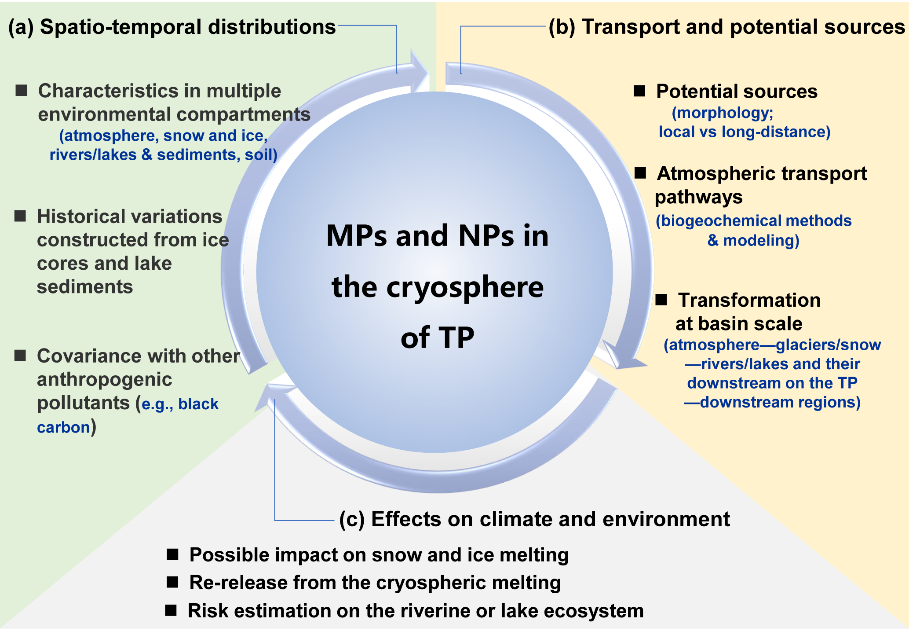 微塑料在雪冰、水體、土壤、沉積物、大氣等環(huán)境中廣泛分布,被認(rèn)為是全球重要新污染物之一。青藏高原冰凍圈地區(qū)遠(yuǎn)離人類活動密集區(qū),是研究污染物來源、傳輸以及影響的天然實(shí)驗(yàn)室。開展青藏高原冰凍圈地區(qū)不同環(huán)境介質(zhì)中微塑料分布特征以及環(huán)境效應(yīng)的研究,能夠提升對微塑料污染全球影響的認(rèn)識。