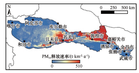 圖2 2000—2023年研究區(qū)多年平均PM10釋放速率空間分布