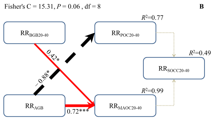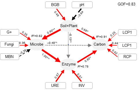 高寒草甸土壤有機碳及其物理組分響應(yīng)比的結(jié)構(gòu)方程模型