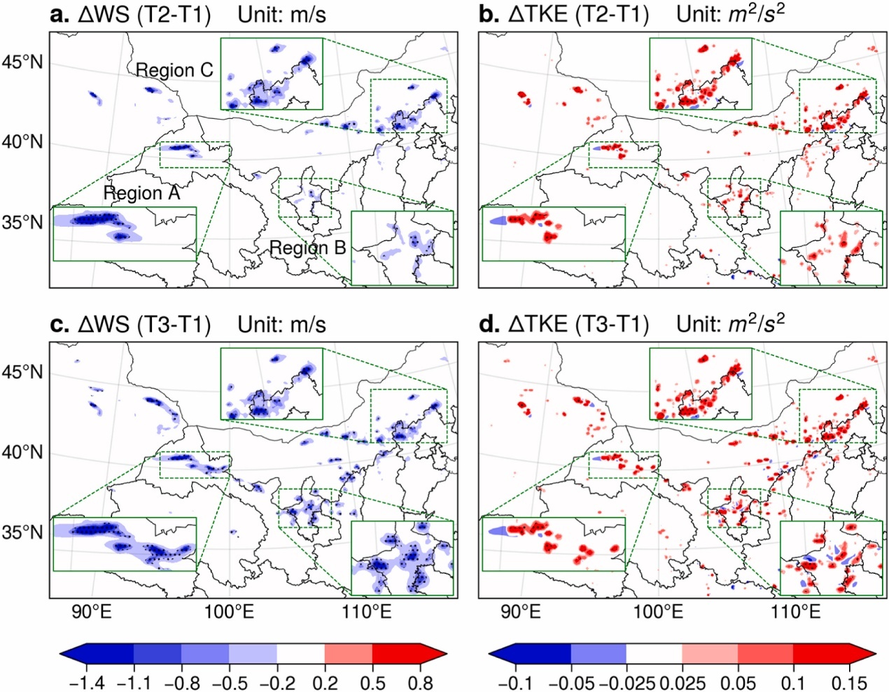 相關研究成果以Potential impacts of large-scale wind farms on regional climate and vegetation in northern China: Insights from modeling studies為題,發(fā)表于國際權威期刊Energy。該研究得到內(nèi)蒙古自治區(qū)“揭榜掛帥”項目、國家自然科學基金等的資助。