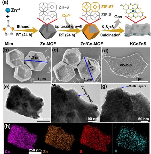圖2. ZIF-8、MLF 和 KCoZnS 的合成示意圖