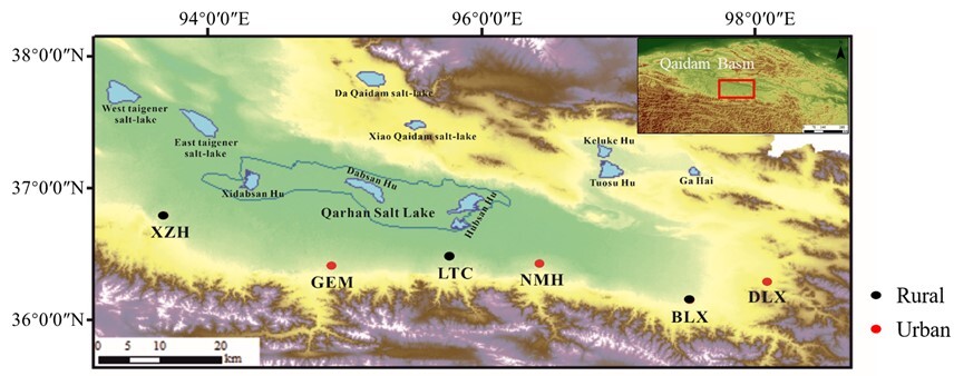 柴達木盆地是我國內(nèi)陸地區(qū)重要的塵源區(qū),兼具極端干旱、鹽湖廣布和人類活動相對集中的區(qū)域特征。該地區(qū)冬季居民供暖長期以煤炭和生物質(zhì)燃料為主,區(qū)域能源消費結(jié)構(gòu)特殊;同時,廣泛分布的鹽湖、鹽沼及鹽漬土壤在風(fēng)蝕作用下持續(xù)釋放鹽塵,深刻影響著區(qū)域顆粒物組成。前期研究已揭示鹽湖揚塵是區(qū)域大氣可溶性離子的重要來源之一,但居民供暖活動對大氣降塵的影響及其與鹽塵的耦合作用仍不清晰。