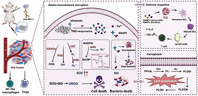 相關(guān)研究成果以“Axially Polarized O-Fe-N4 Single-Atom Enzyme Drives Clearance of Tumor-Resident Intracellular Microbiota and Potentiates Immunotherapy”為題發(fā)表在ACS Nano(2026, 20, 8704-8725)上,蘭州化物所景泉博士為論文第一作者,蘭州化物所海軍研究員、邸多隆研究員和蘭州大學(xué)汪寶堆教授、新疆大學(xué)范仲雄教授為論文共同通訊作者,蘭州化物所為第一完成單位。
