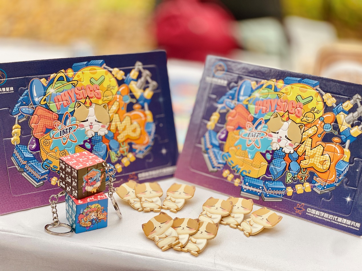 近代物理所通過現場展示“碳離子精準治療癌癥技術及裝置”模型,使得公眾直觀了解到科技創(chuàng)新成果如何促進人民生命健康領域的發(fā)展。近代物理所還展出了以“原子核”“新核素”“加速器”為主題的水晶球夜燈、魔方鑰匙扣、拼圖等文創(chuàng)展品。