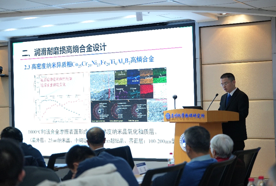 蘭州化物所所長、潤滑材料重點實驗室主任周峰研究員作了2024年度實驗室工作報告。詳細(xì)介紹了2024年實驗室重組和黨建創(chuàng)新文化建設(shè)情況,匯報了實驗室在科研成果、平臺建設(shè)、人才引進(jìn)與培養(yǎng)、產(chǎn)業(yè)化等方面取得的成績和存在的問題與思考,提出了2025年工作重點及目標(biāo)。隨后,程軍研究員和張耀明研究員分別作了題為“潤滑耐磨損高熵合金的設(shè)計研究”和“形狀記憶聚合物創(chuàng)制及其智能響應(yīng)應(yīng)用”的學(xué)術(shù)報告。