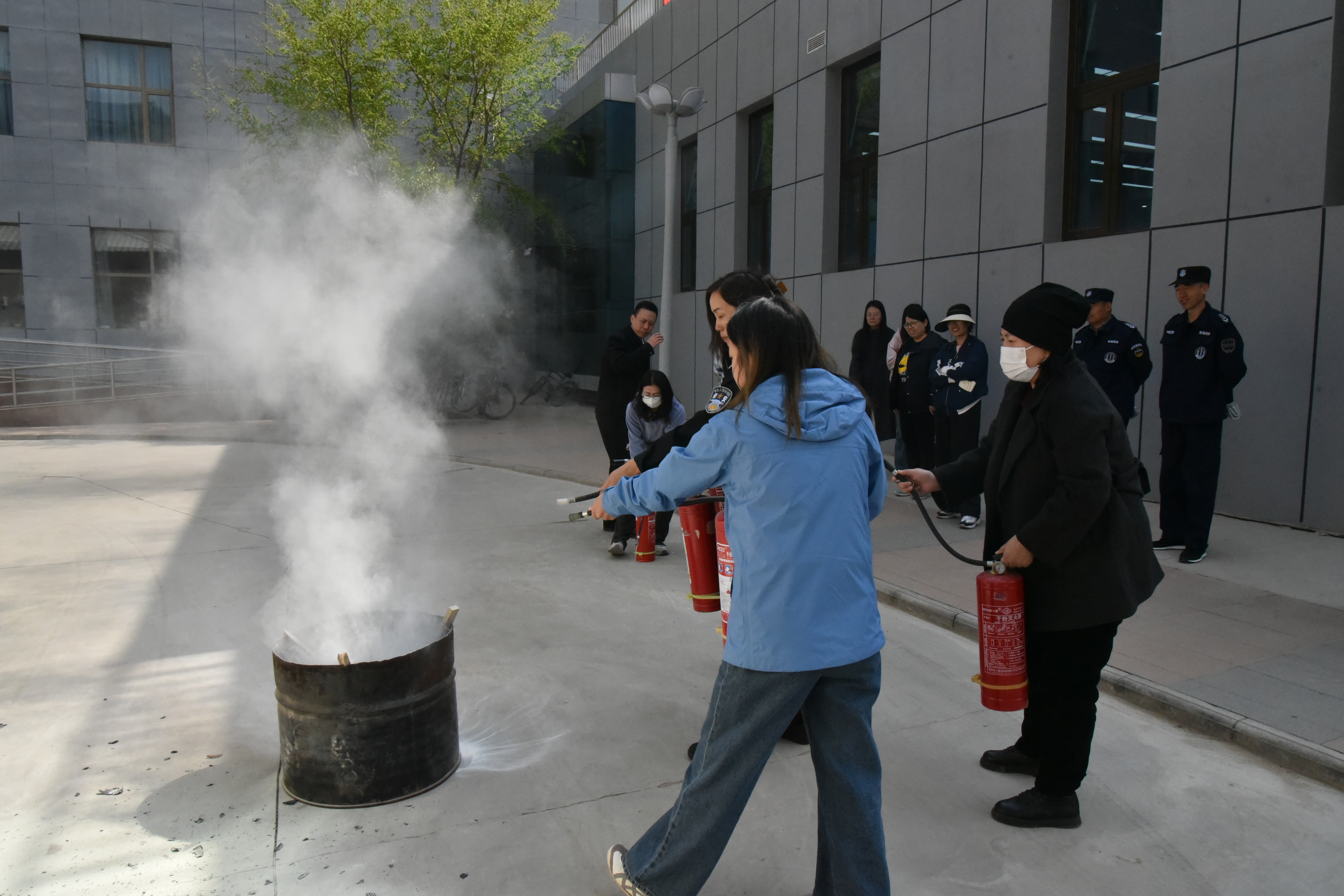 理論培訓(xùn)后,參訓(xùn)人員在政安消防工作人員指導(dǎo)下開(kāi)展實(shí)戰(zhàn)演練。模擬場(chǎng)景設(shè)定為學(xué)術(shù)報(bào)告廳因電路短路引發(fā)火情,濃煙迅速蔓延。隨著警報(bào)響起,應(yīng)急指揮組立即啟動(dòng)預(yù)案,疏散引導(dǎo)員按分工組織人員低姿捂鼻,沿安全通道撤離至指定集合點(diǎn)。隨后,又組織人員使用干粉滅火器對(duì)模擬火源進(jìn)行撲滅。整個(gè)演練過(guò)程響應(yīng)迅速、分工明確,快速進(jìn)行安全疏散。