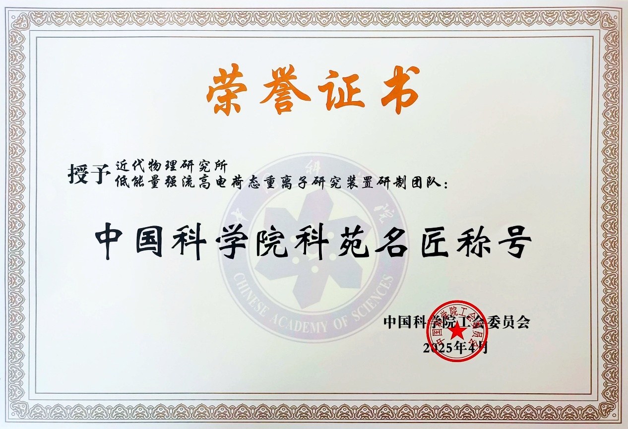 近代物理所低能量強(qiáng)流高電荷態(tài)重離子研究裝置研制團(tuán)隊(duì)榮獲中國(guó)科學(xué)院第六屆“科苑名匠”稱號(hào)