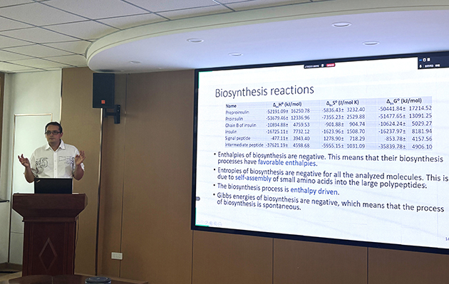 7月3日,塞爾維亞貝爾格萊德大學化學、技術(shù)和冶金研究所(ICTM)Marko Popovi?研究員應邀訪問中國科學院蘭州化學物理研究所,并作了題為“Chemical thermodynamics of biomolecules: Biothermodynamic analysis of biological synthesis of insulin and hemoglobin”的學術(shù)報告。
