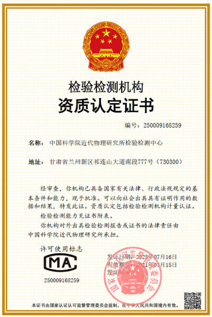 近代物理所檢驗檢測中心通過CMA資質(zhì)認(rèn)定