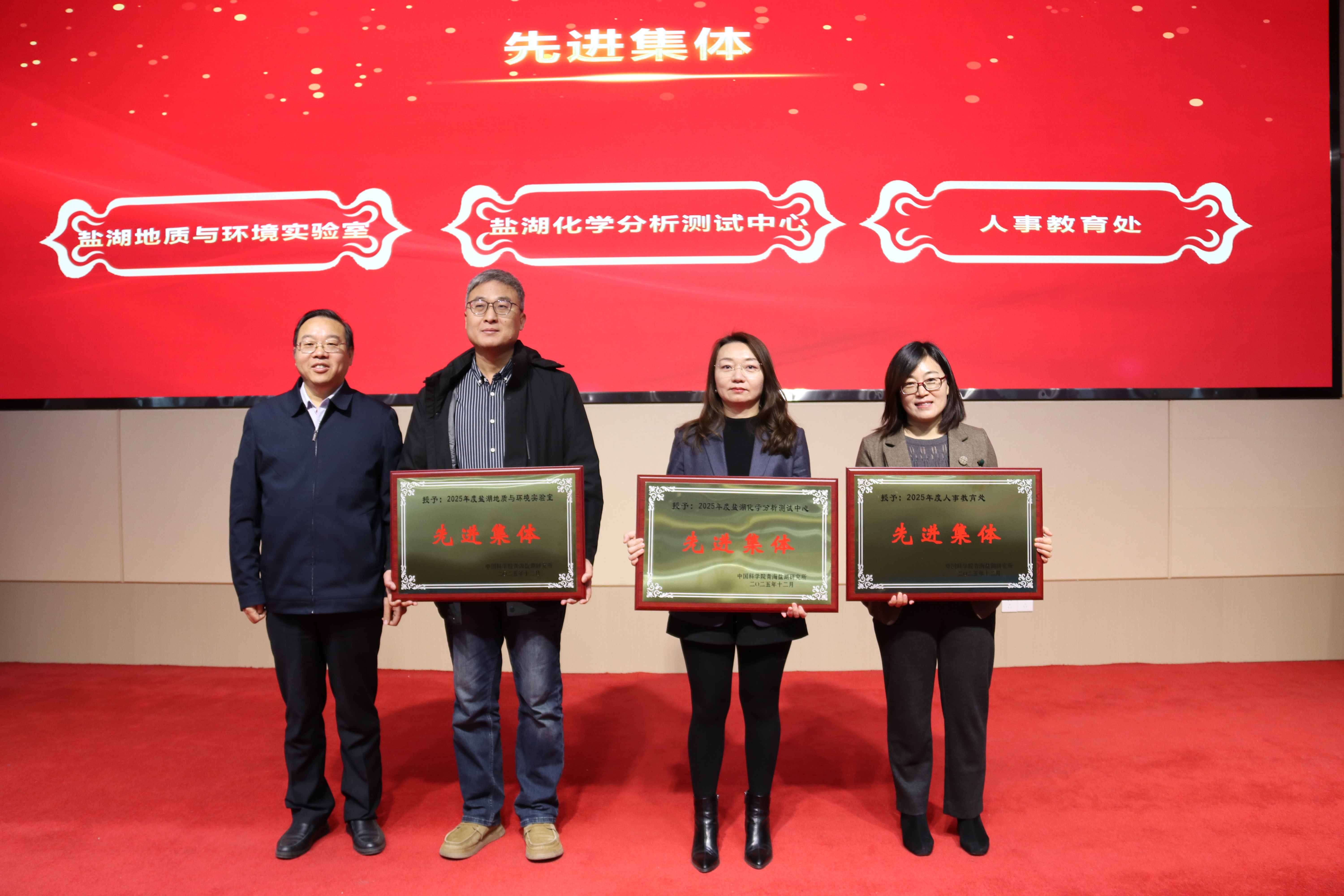 鄭詩(shī)禮副所長(zhǎng)(主持工作)宣讀了《中國(guó)科學(xué)院青海鹽湖研究所關(guān)于表彰2025年度先進(jìn)集體和先進(jìn)個(gè)人的決定》,所領(lǐng)導(dǎo)班子為鹽湖地質(zhì)與環(huán)境實(shí)驗(yàn)室、鹽湖化學(xué)分析測(cè)試中心和人事教育處3個(gè)先進(jìn)集體,衛(wèi)文飛等51位先進(jìn)工作者頒發(fā)了榮譽(yù)證書并合影。