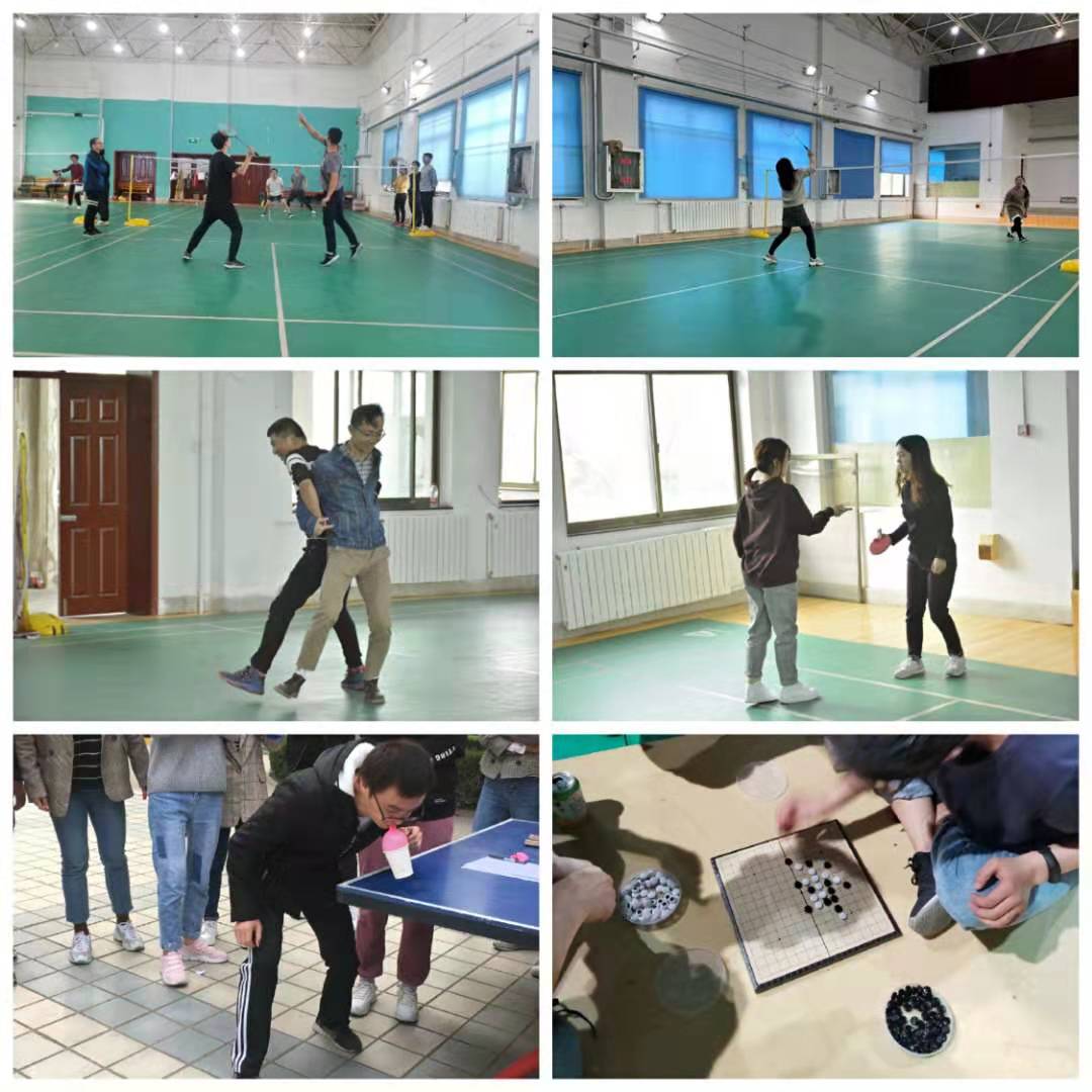 2018級碩士班舉辦了“‘羽’你同行”羽毛球比賽,共設(shè)男單、女單、男雙、混雙四個項目。2017級碩士班開展了六人七足、3V3、捏鼻子轉(zhuǎn)圈直線行走接力賽、乒乓球雙打、氣球運紙杯等多種形式的體育活動。2018級秋博班舉辦了羽毛球、單人跳繩、飛鏢、五子棋、沙包等系列活動。2019級春博和秋博班聯(lián)合開展了籃球賽、趣味乒乓球、背靠背運氣球、轉(zhuǎn)圈猜成語等文體活動。蘇州研究院小組舉辦了女生單打、男生單打、男女混合雙打等形式豐富的羽毛球和乒乓球比賽。這些活動不僅是智慧和體力的角逐,同時也彰顯了團結(jié)和協(xié)作的完美比拼。