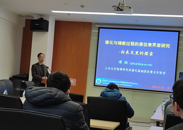 11月25日,應(yīng)羰基合成與選擇氧化國家重點(diǎn)實(shí)驗(yàn)室邀請(qǐng),中國科學(xué)院大連化學(xué)物理研究所傅強(qiáng)研究員訪問中國科學(xué)院蘭州化學(xué)物理研究所蘇州研究院,并作了題為“催化與儲(chǔ)能過程的原位表界面研究-由表及里的探索”的學(xué)術(shù)報(bào)告。