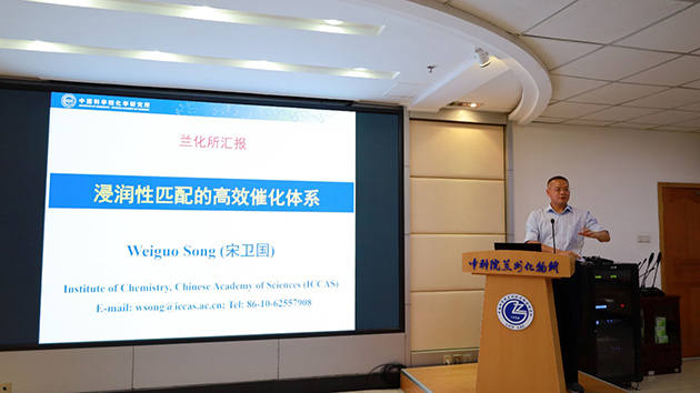 6月11日下午,中國(guó)科學(xué)院化學(xué)研究所宋衛(wèi)國(guó)研究員應(yīng)邀訪問中國(guó)科學(xué)院蘭州化學(xué)物理研究所,并作了題為“浸潤(rùn)性匹配的高效催化體系”的學(xué)術(shù)報(bào)告。