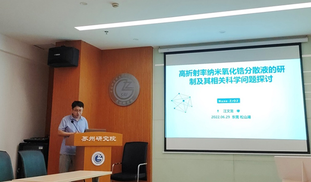 汪文龍研究員介紹了高折射率納米氧化鋯分散液的用途,其主要應(yīng)用在手機、電腦、電視等液晶顯示器的背光模組中,以增強其發(fā)光亮度和提高清晰度。系統(tǒng)介紹闡述了高折射率納米氧化鋯分散液的研究進展,分享了其課題組在該領(lǐng)域課題的提出、材料的設(shè)計以、與企業(yè)的合作開發(fā)交流,以及課題進展中遇到的問題和瓶頸。