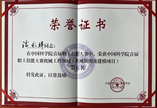 近代物理所通用技術(shù)中心機械準直技術(shù)室共4名職工(含1名領(lǐng)隊)參賽,其中陸海嬌同志參加了代表作展示比賽,榮獲第四名的優(yōu)異成績。潘永祥和楊振2名同志參加了線上的機械制圖和建模比賽,潘永祥榮獲第五名的優(yōu)異成績。
