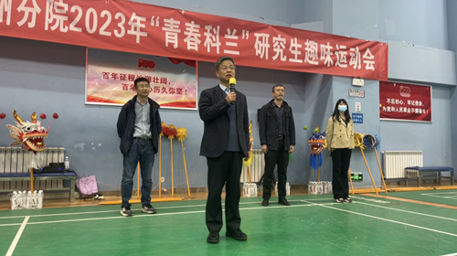 為認(rèn)真貫徹落實(shí)院及國科大關(guān)于做好學(xué)生思政工作的部署安排,切實(shí)提升分院系統(tǒng)校園文化建設(shè),330日下午,蘭州分院在蘭州市體育公園運(yùn)動(dòng)館舉辦了2023年“青春科蘭”研究生趣味運(yùn)動(dòng)會(huì)。蘭州分院分黨組副書記陳改學(xué)出席活動(dòng)并講話。