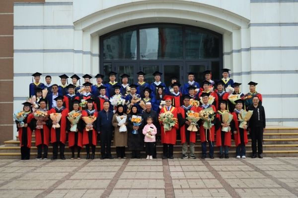 會上,王建萍宣讀了學(xué)位授予決定,畢業(yè)生們依次上臺,學(xué)位評定委員會主席吳志堅對每位畢業(yè)生扶正流蘇、頒發(fā)紀(jì)念品并合影留念。
