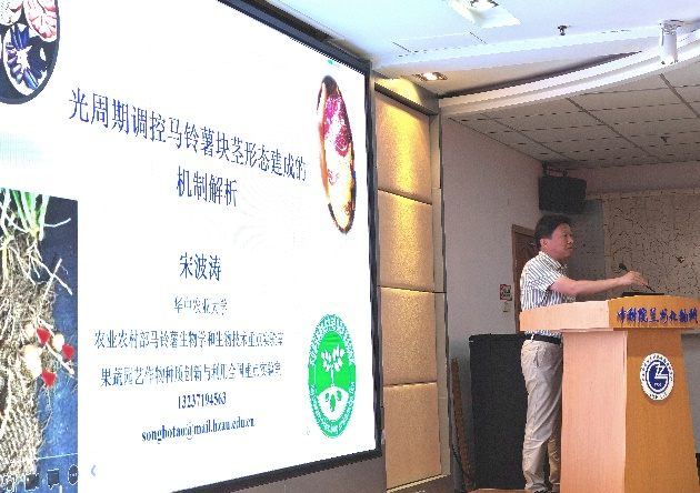 6月9日,農(nóng)業(yè)農(nóng)村部馬鈴薯生物學與生物技術重點實驗室主任、國家馬鈴薯產(chǎn)業(yè)技術體系“加工型品種改良”崗位科學家、華中農(nóng)業(yè)大學宋波濤教授應邀到中國科學院蘭州化學物理研究所進行學術交流,并作了題為“光周期調(diào)控馬鈴薯塊莖形態(tài)建成的機制解析”的學術報告。國家馬鈴薯產(chǎn)業(yè)技術體系相關崗位專家,蘭州化物所、蘭州大學、甘肅農(nóng)業(yè)大學相關科研人員參加報告會。