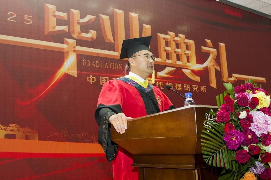 導(dǎo)師代表、原子物理中心副主任張少鋒研究員向畢業(yè)生們送上了真摯的祝福與囑托。他期望大家堅守科學(xué)精神,既有仰望星空的探索勇氣,也有腳踏實地的務(wù)實品格,更需懷抱家國情懷與感恩之心。