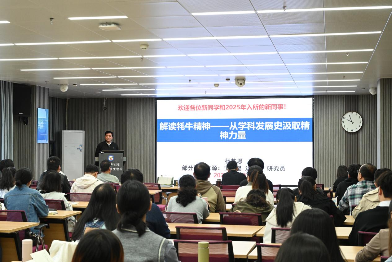 8日上午,入學典禮在莊嚴的國歌聲中拉開序幕。陳世龍首先作了“弘揚科學精神,加強學風建設(shè)”專題報告,強調(diào)了在科研的道路上,傳承好科學精神,遵循唯真求實、嚴謹本分、非所屬者不取、非原創(chuàng)者謙卑的原則和系好學術(shù)人生的第一粒扣子的重要性。隨后,楊其恩作了“解讀牦牛精神——從學科發(fā)展史汲取精神力量”專題報告,向大家講述了“牦牛精神”蘊含的深刻內(nèi)涵,他希望大家能夠從研究所的文化中汲取精神力量,時刻保持對科研工作的熱情和敬畏之心、求知欲和好奇心。最后,入學典禮特邀退休職工李英年研究員作了“熱愛工作 勤勞耕耘——談科學家精神”專題報告,他通過分享40多年的工作經(jīng)歷與感悟,告訴大家精神的培養(yǎng)需要關(guān)注細節(jié)、廣學博覽、在交流與思考中培養(yǎng)創(chuàng)新意識,以卓然眼界、超群膽識、堅定信念、敢天下之先。