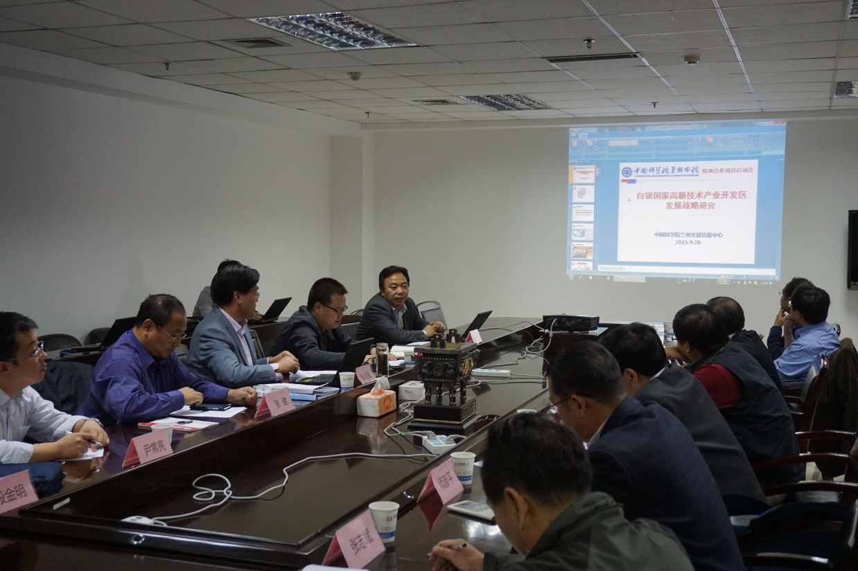 928日,“白銀國家高新技術(shù)開發(fā)區(qū)創(chuàng)新發(fā)展戰(zhàn)略研究”項目啟動會在中國科學院蘭州文獻情報中心召開,來自甘肅省政府研究室、中科院蘭州分院、中科院近代物理研究所、中科院蘭州化學物理研究所、西北師范大學、白銀國家高新技術(shù)開發(fā)區(qū)等單位的十位專家對項目研究方案進行了深入咨詢。會議由蘭州文獻情報中心主任張志強研究員主持,中國科學院蘭州分院副院長楊青春、院長助理張健以及院地科技合作處負責人等參加了會議。