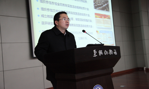 王齊華代表研究所領(lǐng)導(dǎo)班子向與會人員簡要通報了蘭州化物所群眾路線教育實踐活動的進(jìn)展情況。自教育實踐活動開展以來,蘭州化物所黨委認(rèn)真貫徹落實中央和中科院黨組的部署和要求,在中科院第五督導(dǎo)組和蘭州分院黨組的悉心指導(dǎo)下,結(jié)合實際、精心組織,認(rèn)真開展學(xué)習(xí)教育、廣泛深入征求意見、圍繞“四風(fēng)”查擺問題、堅持邊查邊改、開展談心交心活動、撰寫對照檢查材料等活動,在思想上、組織上和行動上做了大量扎實有效的工作。接下來,他從專題民主生活會召開的基本情況、會前準(zhǔn)備、開展批評與自我批評、制定整改措施、下一步主要工作等方面向大家通報了專題民主生活會召開情況。他重點向大家通報了領(lǐng)導(dǎo)班子在“四風(fēng)”方面查擺出的突出問題及改進(jìn)措施、領(lǐng)導(dǎo)班子成員之間開展批評與自我批評的情況。他還向大家通報了中科院第五督導(dǎo)組組長蔣協(xié)助和蘭州分院副院長楊生榮在專題民主生活會上的指導(dǎo)意見。